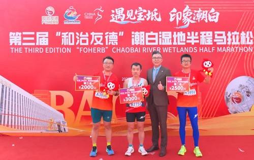 和治友德副总裁池鲲(左二)为赛事男子半马前三名选手颁奖