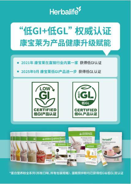 康宝莱,作为健康领域的积极践行者,始终关注着职场人群的健康需求,以实际行动为大众健康保驾护航。截止2025年9月,康宝莱体重管理核心产品——蛋白营养粉全系列所有口味、所有包装规格都成功获得了低血糖负荷低GI和GL认证。“双低认证”进一步为康宝莱体重管理系列产品赋予了强有力的健康公信力。